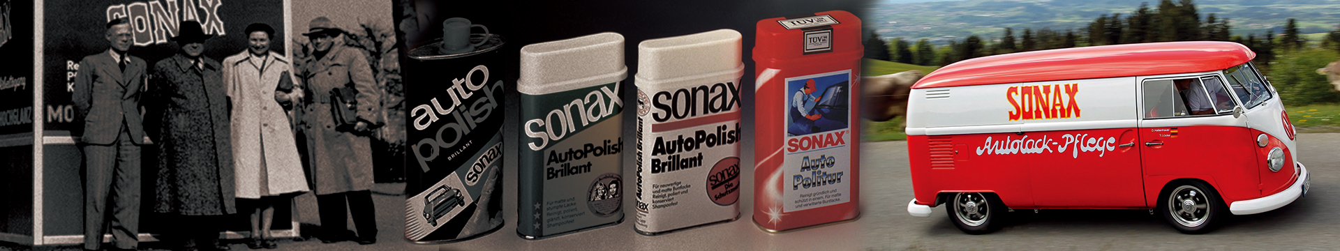 SONAX的历史可以追溯到1903年。当时,在德国南部城市纽因堡( Neuburg an der Donau),Franz Hoffmann首先创立了sona,用非常精细的矿物质制造二氧化硅,用于家用抛光剂。在当时,取得了很大的成功,但由于市场规模的局限性,公司规模成长得并不快。随后,公司决定调整公司发展方向,开始生产汽车护理蜡(wax),并把车蜡(wax)中的“X”与“sona'结合,正式创立“SONAX”品牌,确立了主营业务 —— 汽车护理产品。
